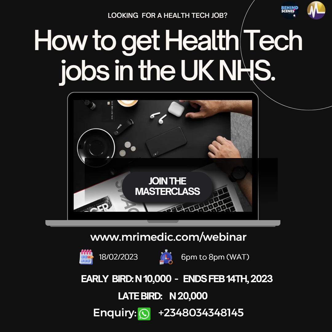 This paid webinar will be taking place on the 18th of February 2023 and is for healthcare professionals and other persons who are looking to get into Health tech but do not understand what opportunities exist in the space. It will also be beneficial to persons studying different health tech courses in the UK and other parts of the world.